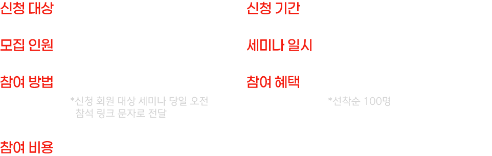 - 세미나 신청 후 입장 링크와 경품은 입력하신 핸드폰 번호로 발송됩니다.